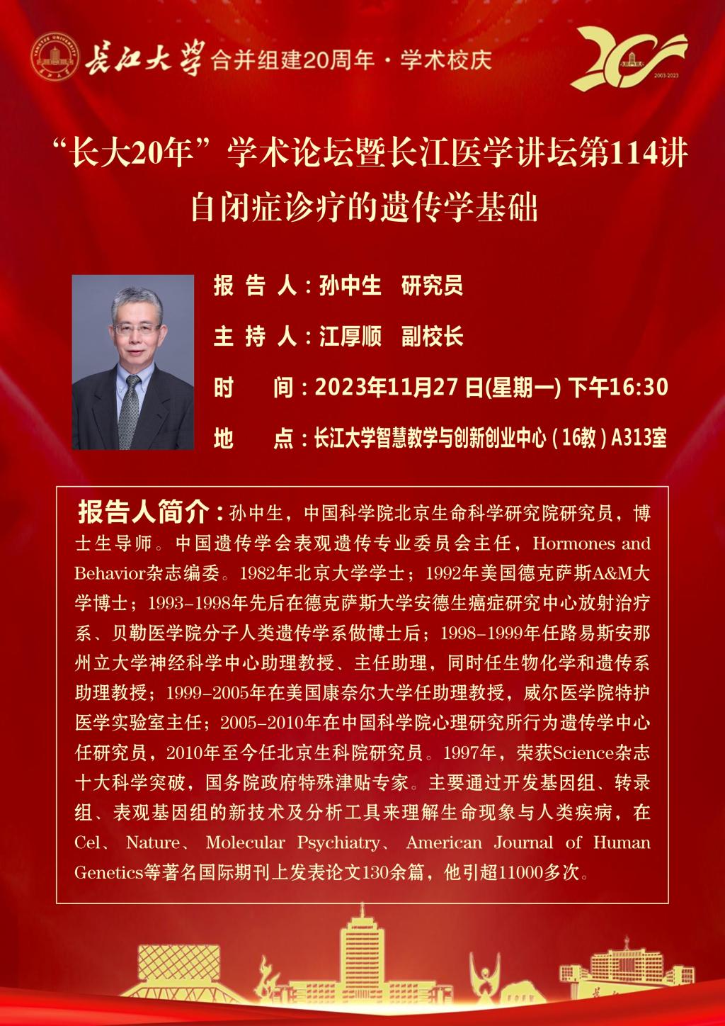 “长大20年”学术论坛暨长江医学讲坛第114讲自闭症诊疗的遗传学基础