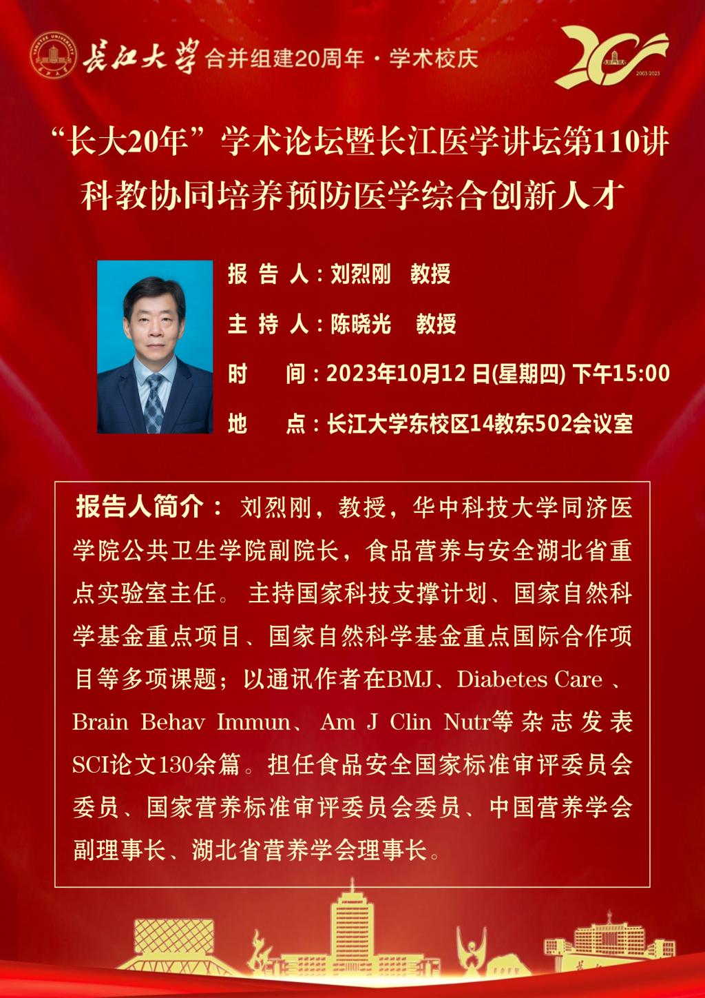 “长大20年”学术论坛暨长江医学讲坛第110讲《科教协同培养预防医学综合创新人才》
