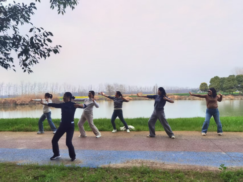 小憩期间,在黄群俊书记的带领下,老师们一起学习八段锦。随着柔和的音乐,大家舒展身体,一招一式,动作整齐而优雅,在强身健体的同时,也享受着这份宁静与和谐。
