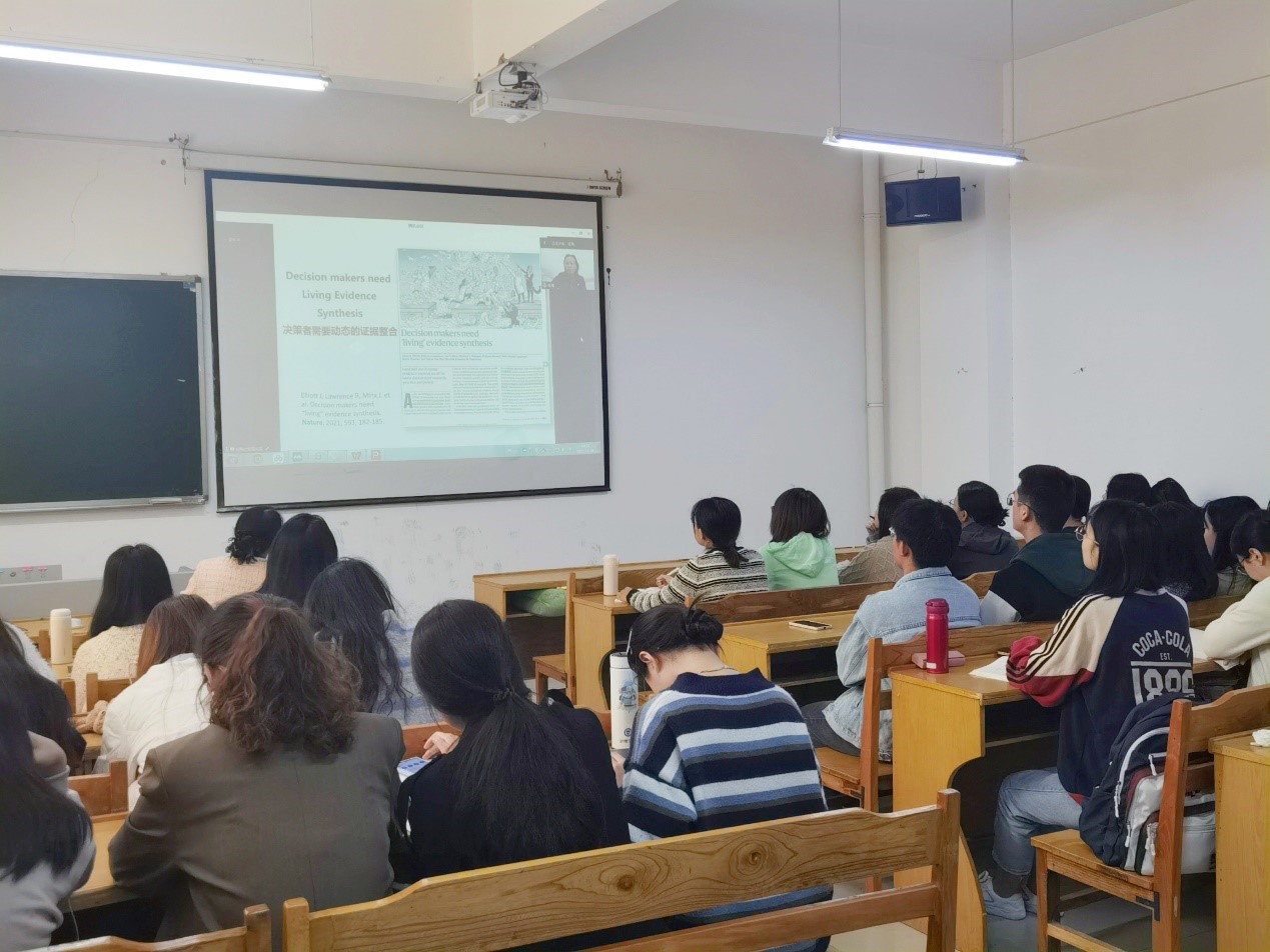 讲座中,胡雁教授从系统评价的意义、系统评价与一般综述及Meta分析的关系、系统评价的类型、适用情形、步骤与方法、Meta分析结果解读多个方面展开精彩讲授,并选用大量循证研究实例进行深入浅出的剖析。讲座逻辑清晰、实用性强,受到了参会师生的一致好评。