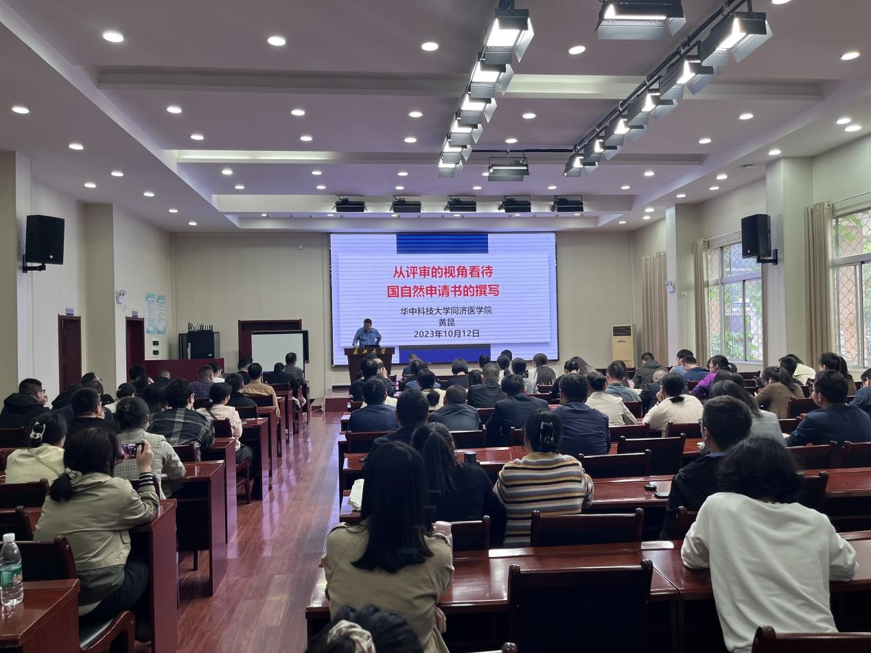 大会旨在鼓励yl7703永利集团全体教师、临床医师积极申报国家自然科学基金项目,提升医学研究的整体水平。会议特别邀请了华中科技大学同济医学院医学学科与发展规划办主任黄昆教授以《从评审视角看待基金申请书的撰写》为题为全体申报人做专题辅导。