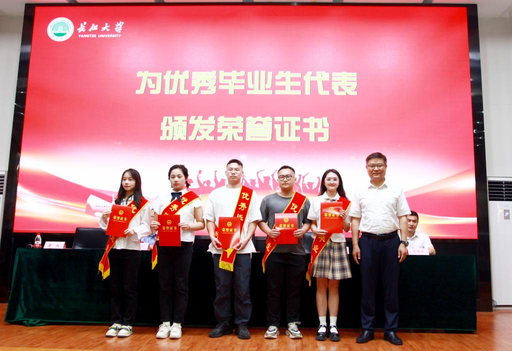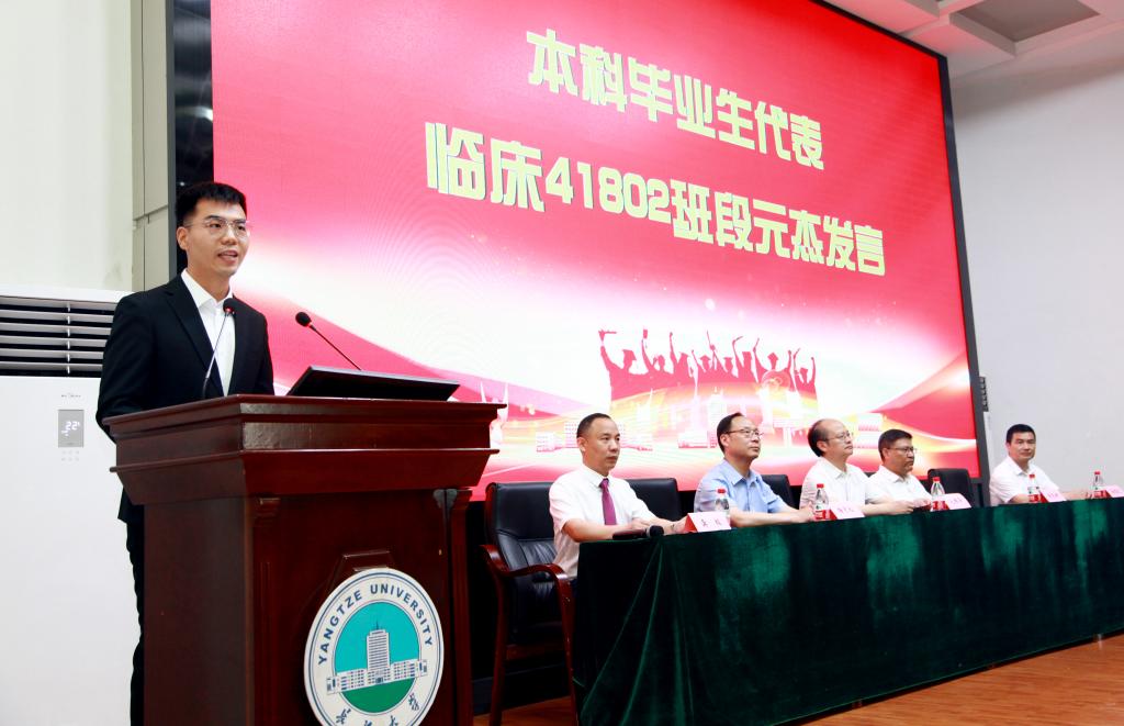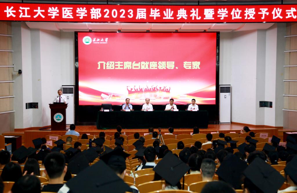 在雄壮的国歌声中,典礼正式拉开帷幕。yl7703永利集团党委副书记张文君宣读了yl7703永利集团关于表彰2023届优秀毕业生的文件。yl7703永利集团副校长、yl7703永利集团部长毛精华、荆州市第一人民医院院长李茂坤、荆州市中医医院院长梅京松、荆州市中心医院副院长汤绍迁分别为yl7703永利集团和第一、第二临床医学院优秀硕士和本科毕业生代表颁奖。