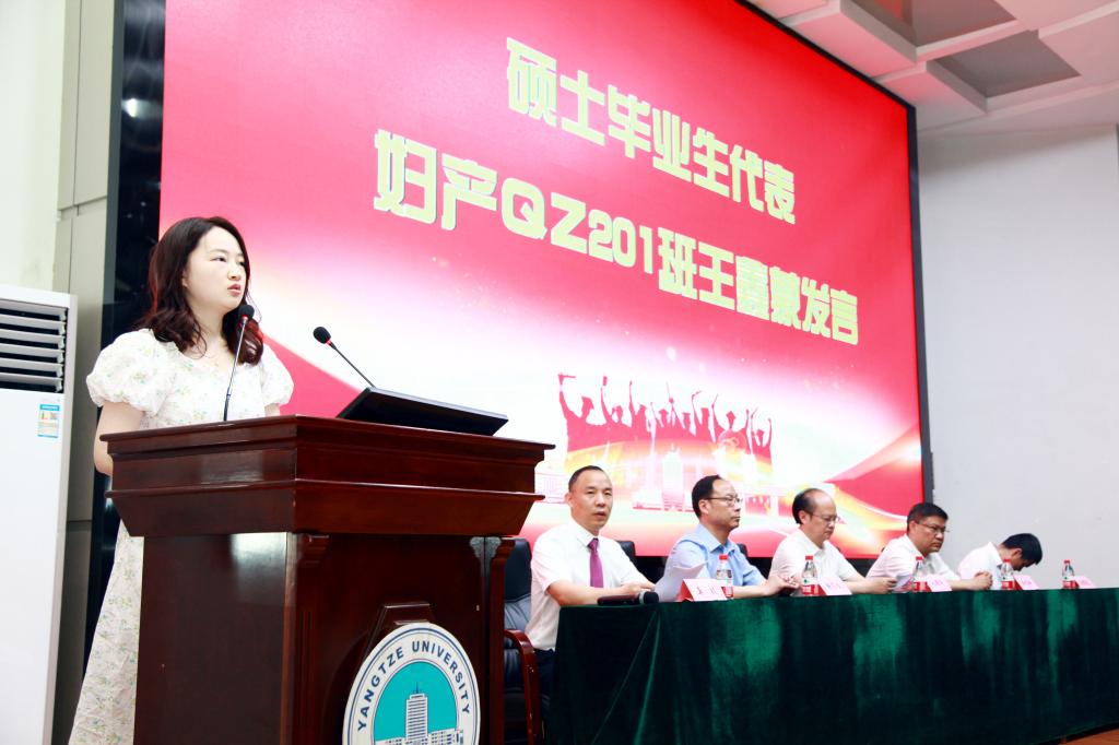 随后,优秀本科毕业生代表临床41802班段元杰同学、优秀硕士毕业生代表妇产QZ201班王鑫蒙同学分别进行发言,回顾了多彩的校园生活,表达了对学院的感激与不舍之情。之后,教师代表刘辉博士进行发言,引导同学们警惕毕业三大“症”,以积极心态奔赴美好未来。