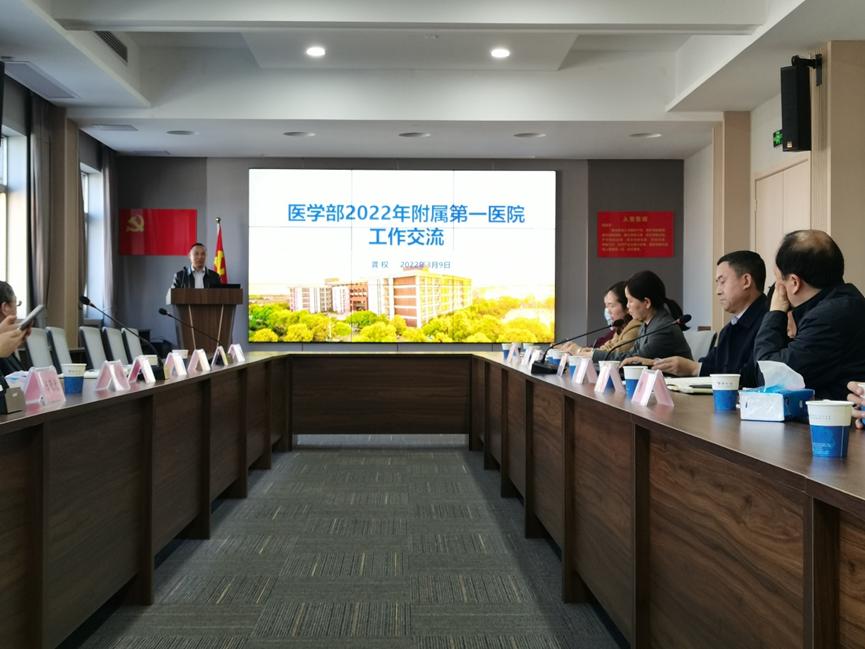 3月9日,yl7703永利集团常务副部长龚权、yl7703永利集团党委书记关辉、yl7703永利集团副部长黄江荣,科技处副处长郭梅等一行到访第一临床医学院调研,学院全体领导班子参加了交流会。