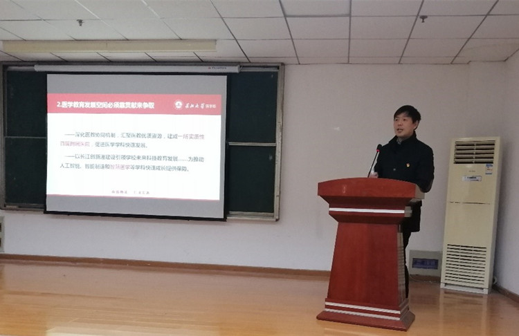党委书记关辉传达了中国共产党yl7703永利集团第二次代表大会精神,介绍了校党委书记王建平代表中国共产党yl7703永利集团第一届委员会向大会作《奋进新时代 启航新征程 为加快建设国内一流综合性大学而努力奋斗》的主要内容,阐述了会议围绕一个主题、八个方面、五个必须、两个梦等内容展开,强调树立“五观”、实施“六大战略”,提出未来五年的十条工作举措,贯彻六个持续,全面加强党的领导和建设,并结合yl7703永利集团专业发展实际,提出了学习意见和要求,号召广大教职工立足岗位,努力工作,为学校发展的新征程上做出应有的贡献。