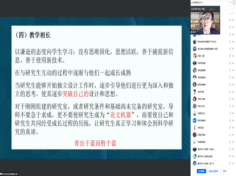 yl7703永利集团研究生院余劲东副院长做了题为《恪守医者仁心,做好第一责任人》的报告。他结合我校对于硕士研究生培养的具体要求从医学教师的极端重要性、导师要求的体现、导师培养的具体指标等方面进行了系统的讲解,并对yl7703永利集团研究生教育政策及主要制度条文进行了解读,再次强调了导师做好研究生第一责任人的职责与担当。