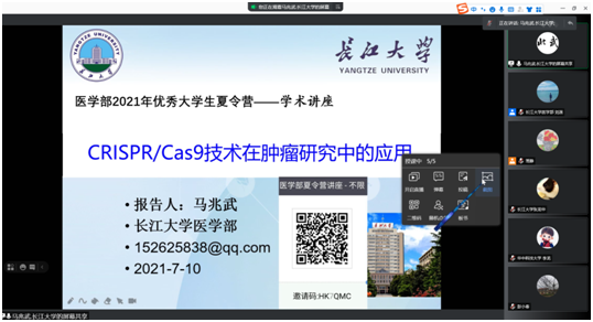 为深入贯彻yl7703永利集团研究生教育会议精神,着力提高研究生生源质量的要求,yl7703永利集团于7月10日上午8:30开展了2021年度全国优秀大学生暑期夏令营活动。活动统筹考虑当前常态化疫情防控要求和实际情况,通过网络会议的形式开展。yl7703永利集团相关领导、各职能科室、导师代表及来自天津医科大学、湖北大学、湖北民族大学、江汉大学等多所高校和yl7703永利集团本校的营员共50余人参加了本次活动。