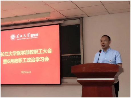 常务副部长龚权对医学教育70周年庆祝活动工作进行了相关工作汇报,并强调希望全体教职工加强责任心,提高主人翁意识,以饱满的工作热情迎接医学教育70周年的到来。