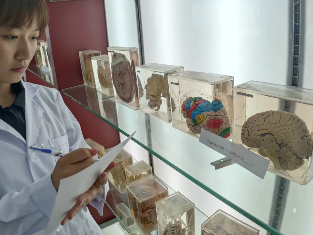 比赛伊始,从初赛的中脱颖而出的60名选手个个精神抖擞,早早的来到14教南204教室准备。随后,刘兵老师给参赛选手们进行了详细的讲解了考前培训以及决赛规则与形式,并安排选手比赛的考试顺序。在工作人员的指引下,选手们逐个依次进入考场,在人体生命科学馆中,选手们神情专注,认真辨别编号标本的形态结构和特征;在形态学实验室中,每轮比试五名选手依次进入考场,按照要求在规定时间内辨认组胚玻片上的组织结构等。