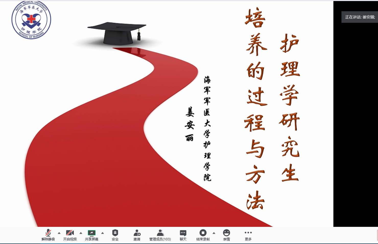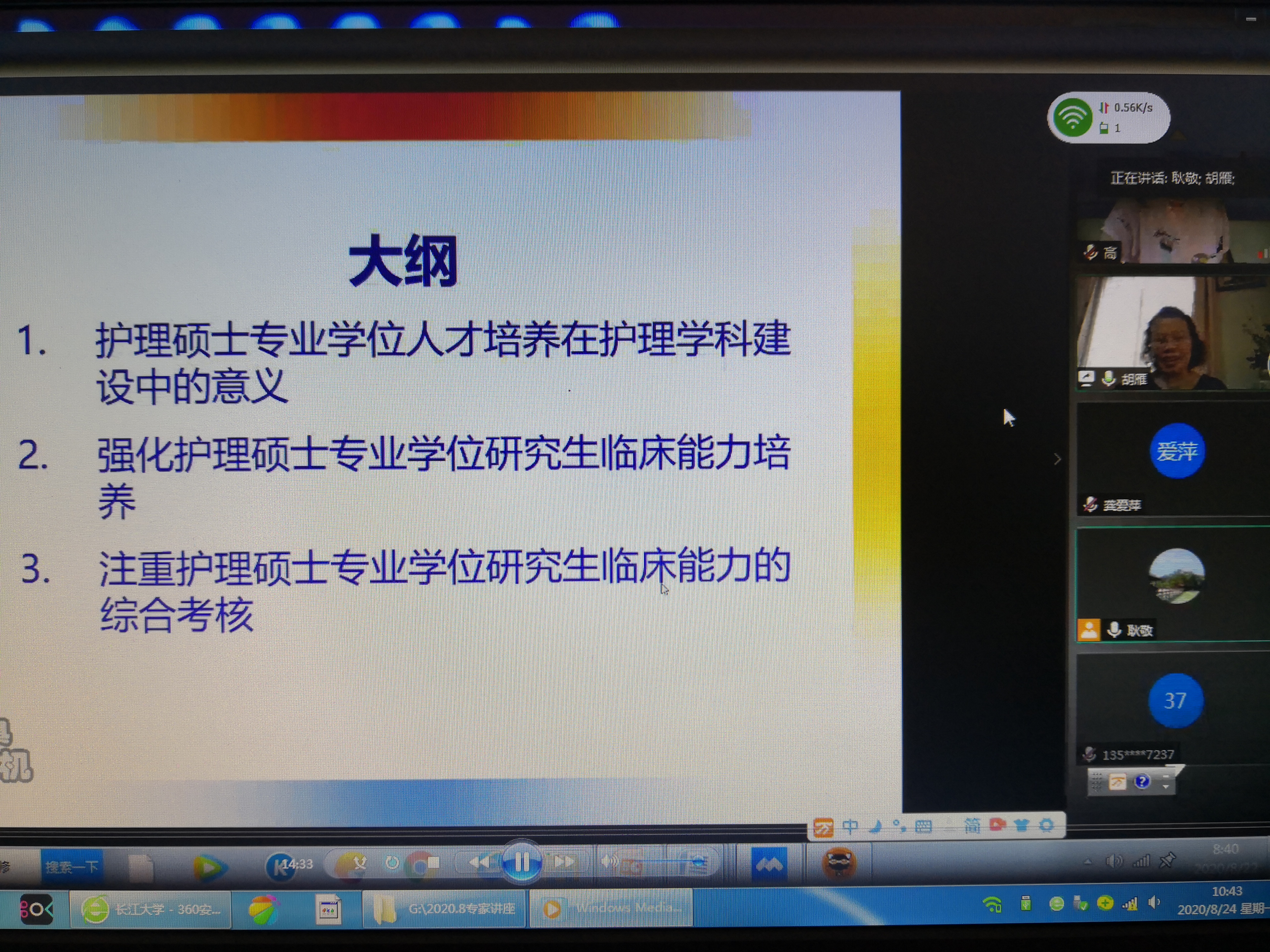 (通讯稿 耿静 )2020年8月22日上午8:30,yl7703永利集团以腾讯视频会议的形式邀请复旦大学胡雁教授、中国人民解放军海军军医大学姜安丽教授为yl7703永利集团护理硕士专业学位研究生导师作专题讲座,yl7703永利集团护理专硕导师、护理系全体教师、yl7703永利集团护理硕士研究生各实践医院导师以及临床实践指导教师参加了本次专题讲座,网上参会人数近120人。本次专题讲座由yl7703永利集团领导胡娅副院长主持。