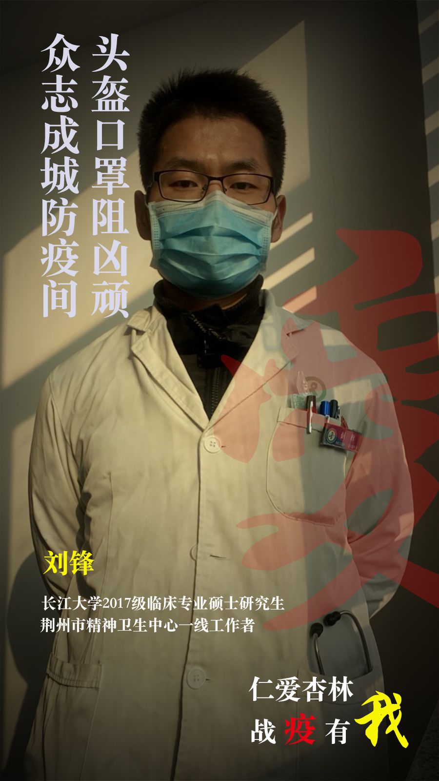 骨科王谨接触确诊病人,隔离期满后重新投入临床工作。精神科刘锋则积极通过微信、QQ等社交平台向同学们发布疫情“心理调试指南”,提供心理援助等帮助。