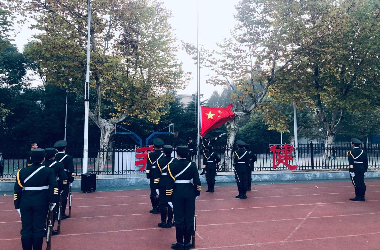 早晨6点40分,同学们陆续到达操场后,以班为单位整理队伍站定,一切准备就绪后,升旗仪式正式开始,国旗护卫队踢着庄严的步伐,眼神毅力,表情肃穆,“升国旗,奏国歌”伴着嘹亮的国歌声,五星国旗在晨风中冉冉升起,缓缓至顶,全体师生行注目礼,表达自己对国旗最崇高的敬意。