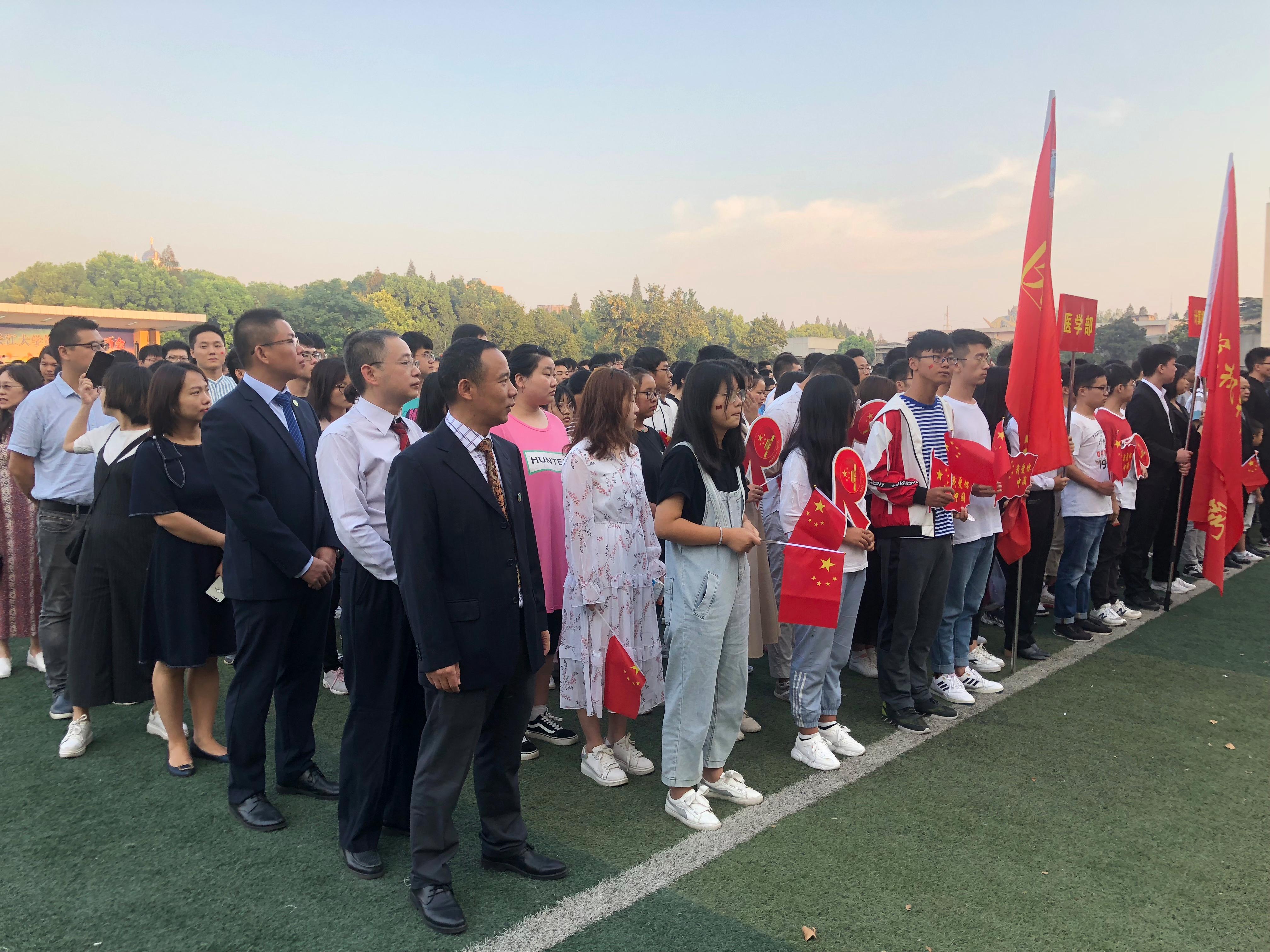 (通讯员:王乾 任柯婕、朱梦妮、潘俞彤、高宇彤)2019年10月1日早上七点,我校庆祝国庆70周年升国旗仪式分别在东、西、武汉三个校区隆重举行。yl7703永利集团常务副部长兼基础医学院院长龚权、党委书记关辉、健康医学院院长兼yl7703永利集团副部长黄江荣、基础医学院副院长胡娅、健康医学院副院长陈晓光、第一临床医学院党委副书记曾盼参加了升旗仪式。