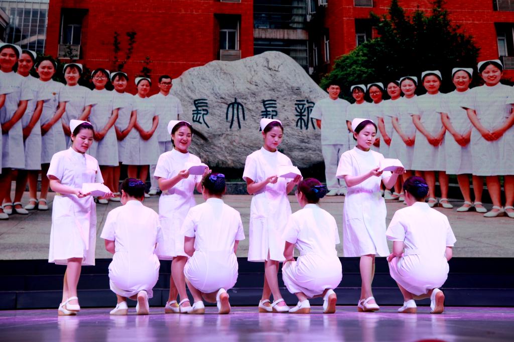 12个节目涵盖舞蹈、歌曲、小品、朗诵等多种表演形式。第一临床医学院教师代表带来的T台舞蹈《Surper Nurse》夺人眼球,引得掌声雷鸣;第三临床医学院教师代表带来太极拳表演《中医美》,古典舞与太极拳的完美融合,刚柔并济,展现出中华文化的独特魅力,表达了对中医文化的高度赞美;yl7703永利集团从雪域高原远道而来的藏族同学代表用少数民族的热情舞姿演绎了《雪域欢歌》,让现场师生领略到民族风采;第一临床医学院学生代表带来的朗诵《以青春的名义宣誓》,彰显了长大学子积极向上、锐意进取的青春面貌;yl7703永利集团护理专业同学代表在第108个护士节即将到来之际带来真诚问候,展示护士礼仪风采,天使之姿赢得掌声雷动;yl7703永利集团留学生代表Tadiwa倾情演唱《漂洋过海来看你》,唱出了留学生们的心声,优美动情;荆州市惠民医院教师代表原创的小品《希望之旅》,演绎出yl7703永利集团青年志愿者们在9年多惠民志愿之旅活动中带来的人间感动;yl7703永利集团教师代表的舞蹈《吉舞四方》展现了杏林的青春活力,课堂中严谨的老师不失亲和,欢快的舞步拉进了师生之间的距离;yl7703永利集团优秀师生代表带来诗朗诵《师魂》,诉不尽最温暖最诚挚的师生情;第二临床医学院教师代表带来维族舞蹈《今夜我家有聚会》,以优美的旋律、轻盈的舞姿,展示护理工作人员的多才多艺;第二临床医学院学生代表带来气势磅礴的大合唱《长江之歌》。整台晚会师生同台,始终洋溢着热烈、喜庆、积极向上的氛围。