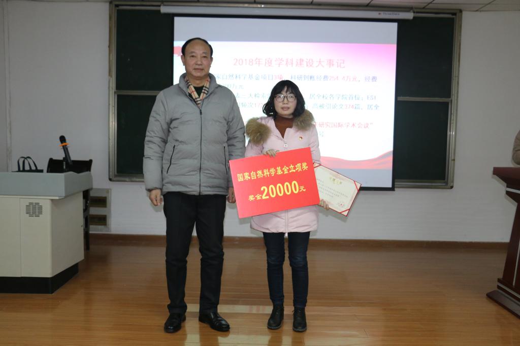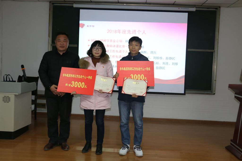 年会上,李兴祥常务副书记宣读了yl7703永利集团关于表彰2018年学科建设和科研工作先进个人的文件并颁奖,杨辉博士和郑兵博士获青年教师科研工作先进个人一等奖,习志江和原静民等教师获检索收录论文奖,杨辉博士获国家自然科学基金立项奖。最后,杨辉博士作科研工作经验交流,她介绍了自己申请国家自然科学基金项目的经历与经验,认为做科研工作没有捷径,唯有持之以恒,才能取得真经。