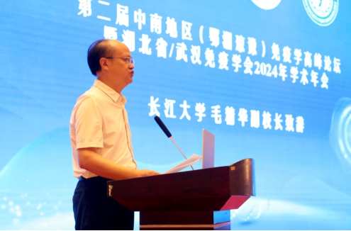 大会由湖北省免疫学会副理事长郑芳教授主持,副校长毛精华代表yl7703永利集团向出席会议的各位专家表示热烈欢迎,介绍了学校医学教育取得的卓越成效,指出此次论坛是继今年5月份在我校举办的“2024年基础免疫学术研讨会”之后的又一场学术盛宴,希望以此为契机,广交学术朋友,广纳真知灼见,加强交流合作,共同致力于推动免疫学等医学事业高质量发展,以更高水平的医疗卫生保障服务能力不断增进民生福祉、早日建成健康中国。鄂湘琼豫四省免疫学会理事长也先后在开幕式上致辞。
