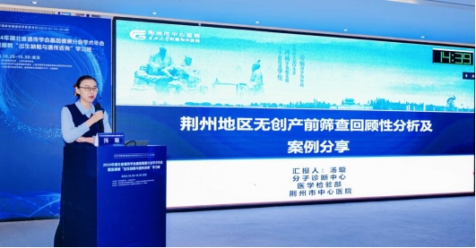 附属荆州医院分子诊断中心汤璇博士以《荆州地区无创产前筛查回顾性分析及案例分享》为主题在年会上作报告,针对医院产前筛查与产前诊断发展历程、NIPT总体分析、阳性检测分析、高风险检测性能、SCA检测性能等进行全面汇报,受到了与会专家学者的一致好评。