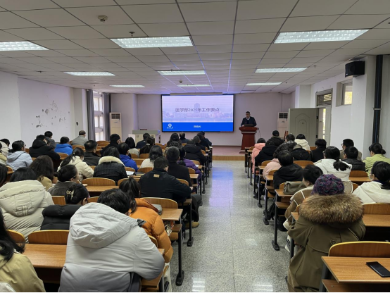 会上,工会主席王超对新学期教学工作进行部署。副部长费杨对2025年国家留学基金委国际合作项目进行解读。常务副部长兼基础医学院、健康医学院院长陈晓光对2025年学部工作要点从党建引领、立德树人、科学研究、学科建设、人才引育五个方面进行强调。