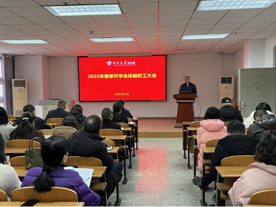 2月16日下午,yl7703永利集团在14教南410会议室召开2025年春季开学全体教职工大会,会议由yl7703永利集团党委书记黄群俊主持,全体教职工参加。