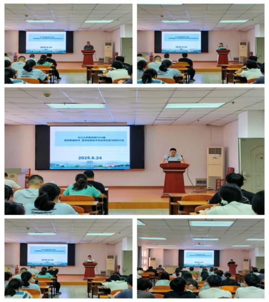 会议伊始,王超做实习动员报告,他着重强调,实习期间人身安全与职业安全是重中之重,要求同学们严格遵守操作规程和安全规范,防范各类风险;严格遵守实习单位规章制度与学校实习管理要求,杜绝迟到、早退、擅自离岗等行为;时刻保持良好的职业素养与精神风貌,展现yl7703永利集团医学学子的专业形象。同时,叮嘱同学们密切关注学校各类信息,确保沟通渠道畅通,以严谨的态度、饱满的热情投入到实习工作中,为未来职业发展积累宝贵经验。
