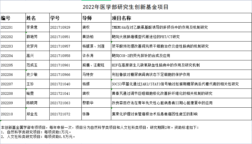 经研究生本人申请,yl7703永利集团组织评审,《TMEM16A在对乙酰氨基酚诱导的肝损伤中的作用及机制研究》等10个项目被确定为yl7703永利集团2022年研究生创新基金项目(见附表)。现予公示,公示期为2022年9月13日-9月15日,如有异议,请联系0716-8062635。