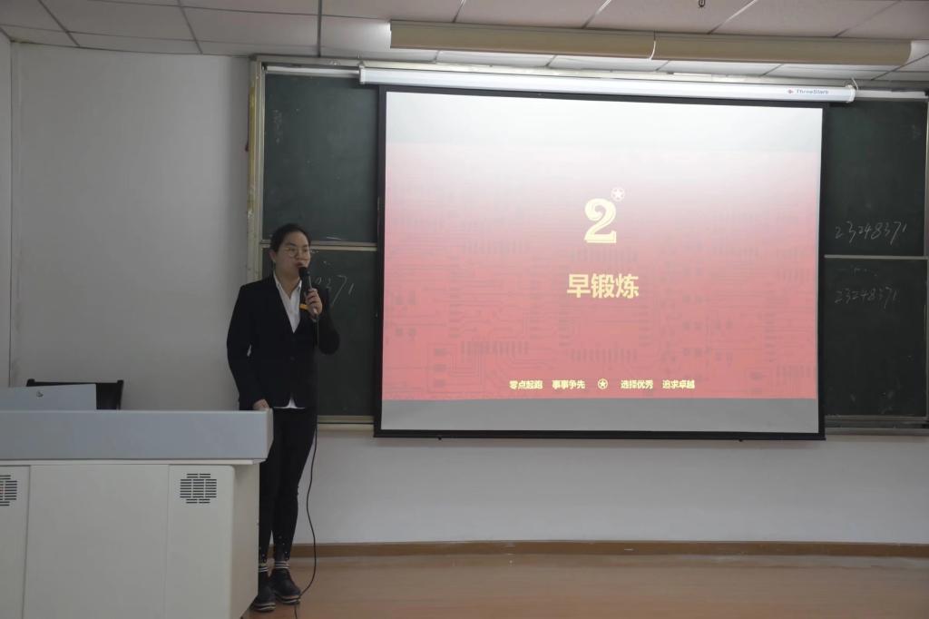 活动伊始,通过播放宣讲视频,同学们了解“三早”行动。随后,主讲人滕文姝介绍了青马培养体系和青马班成就,分享了自己在青马班的成长过程,鼓励同学们坚持早起;主讲人程子纯详细讲解青马班丰富而精彩的日常活动和课程,以及从体魄、能力、思想三方面来宣讲早锻炼;主讲人何珊珊弘扬青马精神,诉说自己对青马班集体的热爱,并且提到要坚持上早自习。紧接着,在自由提问过程中,三位主讲人针对同学们提出得问提作出详细的回答。活动最后,张文君副书记向同学们讲述自己多年坚持早上六点半在长江边游泳经历,提倡同学们早起床、早锻炼、早自习。辅导员王乾老师督促同学们好好学习,积极备考四六级。