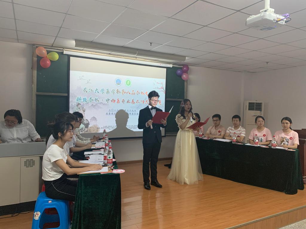 (通讯员:邓韬 邓庆怡)2019年5月29日晚七点,yl7703永利集团第八届杏林文化节中西医专业基本功大赛决赛于14教南410学术报告厅成功举办。yl7703永利集团副部长黄江荣、党委副书记张文君、副教授李孝林莅临比赛现场。比赛评委老师由荆州市中医医院主任医师邵治国、主任医师桂壮,yl7703永利集团副教授潘丰满老师担任。中西医临床专业学生共同观看了本次比赛。
