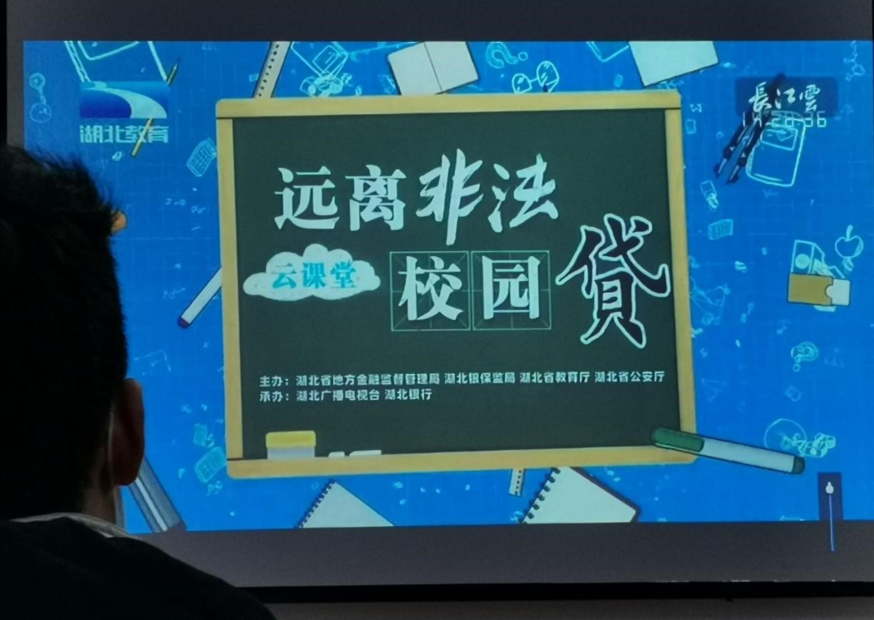 活动现场,学生通过老师的讲解和观看云课堂的短片来深入了解了校园贷的危害,短片中,湖北银保监局,湖北省公安厅,湖北省教育厅的于莎莎,陶清和毛晶玥共同向同学们讲述了当下校园贷的套路与其背后的可怕之处。