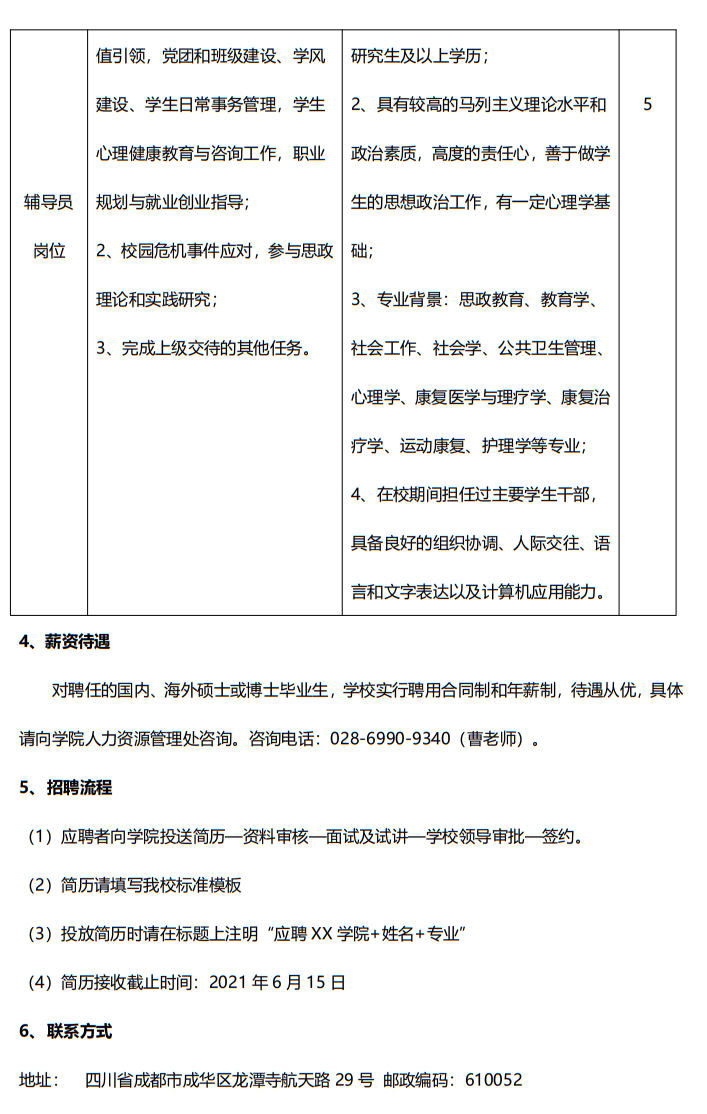 西南财经大学天府学院康养护理学院2021年教师招聘公告