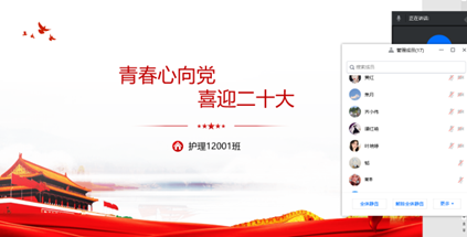本次主题班团活动为线上线下相结合,通过新闻、专题报道等视频和文字资料开展集中学习。临床12002班李铭崧同学组织全班观看习近平总书记在中国人民大学考察的视频,近距离感受习近平总书记与大学生的温暖瞬间,观看后同学们针对如何实现自己青春赛道上的奋力奔跑发表感想;护理12001班王诗涵同学在全班观看学习视频后,组织大家朗读学习材料,并讨论大家在青春的赛道上奋力奔跑的目标是什么;中西医12001班方晓宇同学领学本次学习资料后,多名同学依次上台谈自己的“奋力奔跑”心得,班主任张燕翔老师结合工作经历和同学们的困惑,与大家分享学习感想。