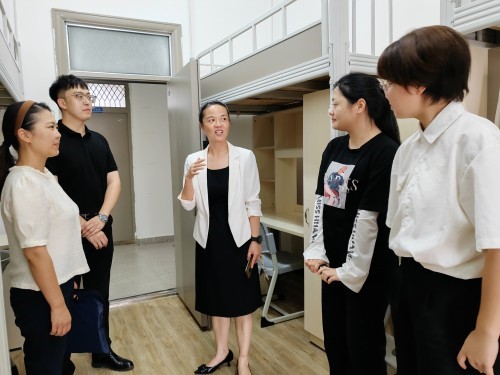 yl7703永利集团常务副部长龚权、党委书记黄群俊、健康医学院院长兼yl7703永利集团副部长陈晓光和党委副书记张渊深入新生寝室,了解新生住宿情况,及时为新生提供帮助。