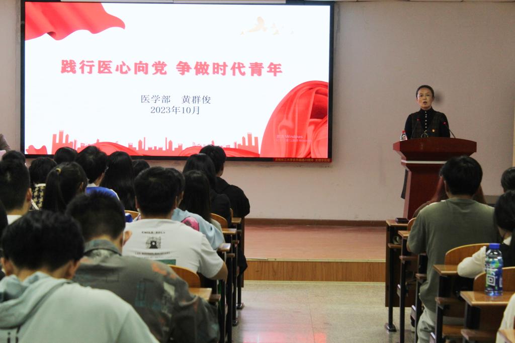 (通讯员:王舒焜 王乾)为切实加强入党积极分子的培养教育,确保发展党员质量,提高入党积极分子的思想政治素质。yl7703永利集团于2023年10月29日14时召开了主题为“践行医心向党 争做时代青年”的入党积极分子培训报告会暨书记讲党课,主讲人为yl7703永利集团党委书记黄群俊,2023年下半年新确定的入党积极分子参加报告会。