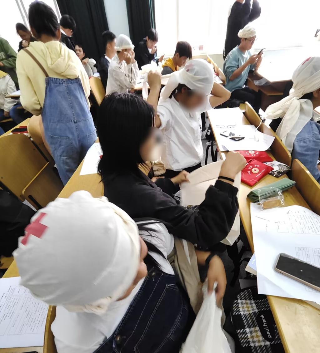 培训中,指导老师们用理论知识、案例导入和视频辅助相结合的方式,深入浅出地围绕日常突发意外、绷带的急救使用、赫姆洛克急救法、心肺复苏等基本技能等进行生动的讲解,并对急救操作过程中的注意事项进行重点强调。在实际操作环节,指导老师现场演示指导并和同学们开展深入的互动,指导他们进行现场演练,帮助他们在最短的时间内掌握基本的急救技巧。