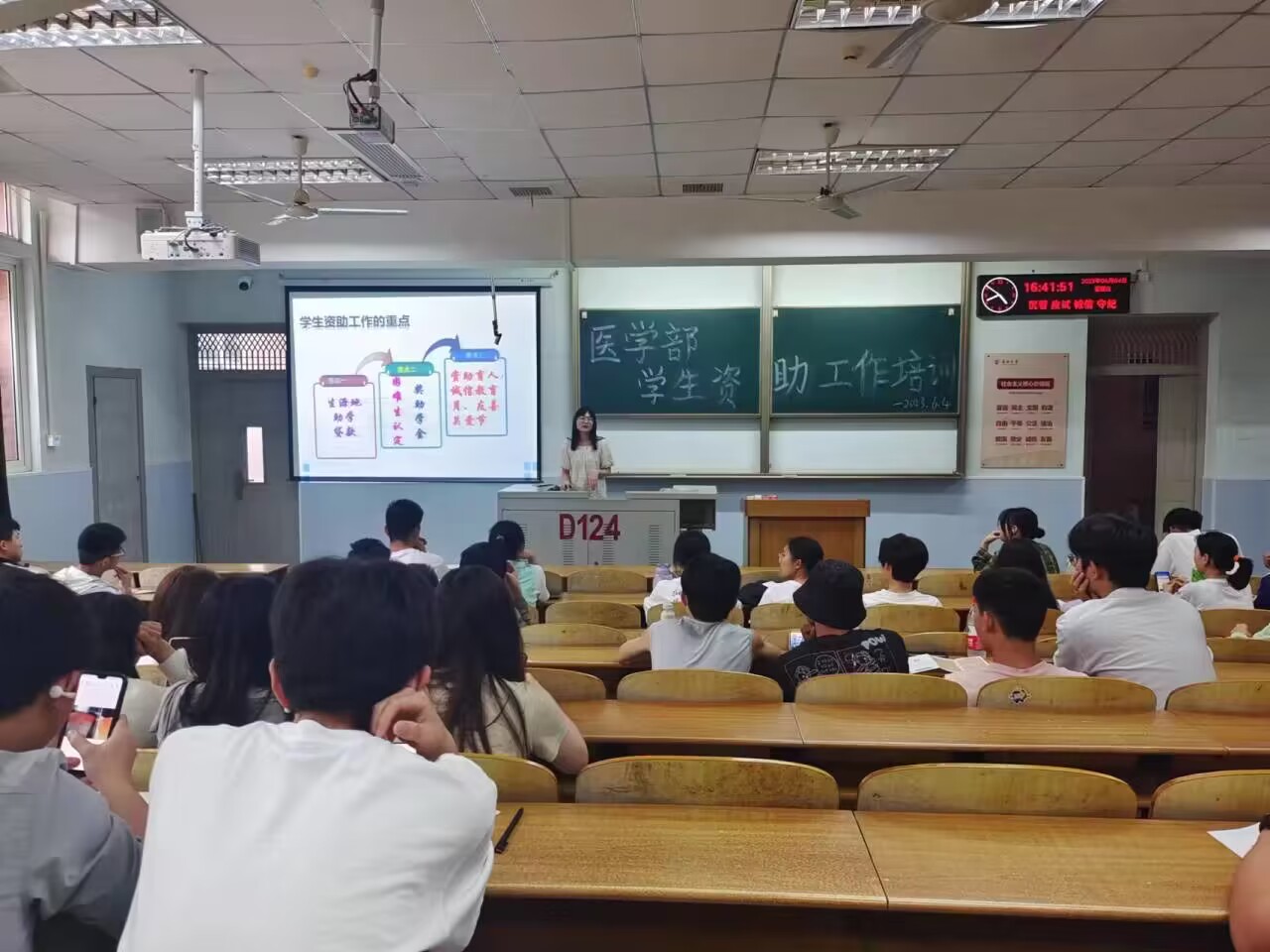 (通讯员:代阳 邹熊子怡)为进一步扩大资助政策的宣传力度,更好地开展精准资助工作,提升资助水平,进一步推进“不让一个学生因家庭经济困难而失学”目标的实现,2023年6月4日yl7703永利集团在13教D124开展了资助政策培训宣讲活动,yl7703永利集团各班学生骨干参与了此次培训活动。