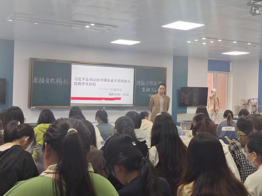 临床12201班和临床12207班在学习小组成员曾芝琳老师领学下,共同学习回信原文,观看《为全面建设社会主义现代化国家贡献青春力量——习近平总书记给中国农业大学科技小院的学生回信引起强烈反响》视频,进一步领会回信精神。白婧琪、乐钦等同学联系学习实际畅谈体会,同学们表示要扎实学好专业知识,积极参加志愿活动,用自己所学知识为基层卫生事业发展尽一份力。