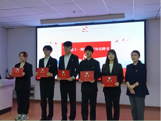校团委社团部、社会实践部部长杜岳青老师为第十期精诚班优秀班干部、优秀学员颁发荣誉证书,yl7703永利集团党委副书记张渊老师为第十一期精诚班学生辅导员颁发聘书。