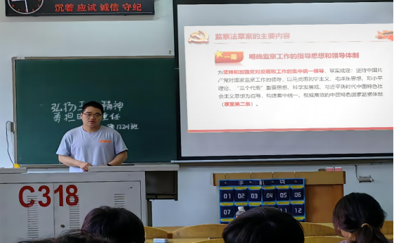 二、深入开展党纪学习教育。各团支部围绕“党纪学习教育”开展主题团日活动,引导学生树立诚信廉洁意识,做到学纪、知纪、明纪、守纪,搞清楚党的纪律规矩是什么,弄明白能干什么、不能干什么,把遵规守纪刻印在心,内化为日用而不觉的言行准则,进一步强化纪律意识、加强自我约束、提高免疫能力,增强政治定力、纪律定力、道德定力、抵腐定力,始终做到忠诚干净担当,积极投身到社会主义现代化建设的伟大实践中,将所学的党纪知识运用到实际生活中,严格要求自己,遵守党的纪律和规定,保持积极向上的态度和精神风貌,为加快建设高水平大学提供坚强纪律保障。