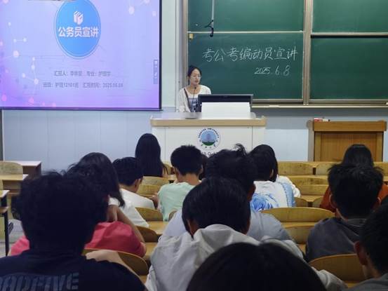 (通讯员:蔡雨萱)为了帮助同学明确备考方向,提高应试能力,2025年6月8日晚,yl7703永利集团在13教D124教室顺利召开“考公考编宣讲会”。本次宣讲会由护理专业优秀学生代表李林斐担任主讲,吸引了近百余同学参与。