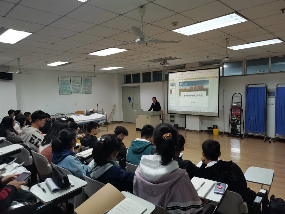 其次由教科办的胡艳红老师为新生介绍yl7703永利集团教学相关工作,其中重点讲解有关于临床医学本科生个人培养计划、选课、考试等相关问题。同时也耐心回答了同学们对教学工作上的疑问。