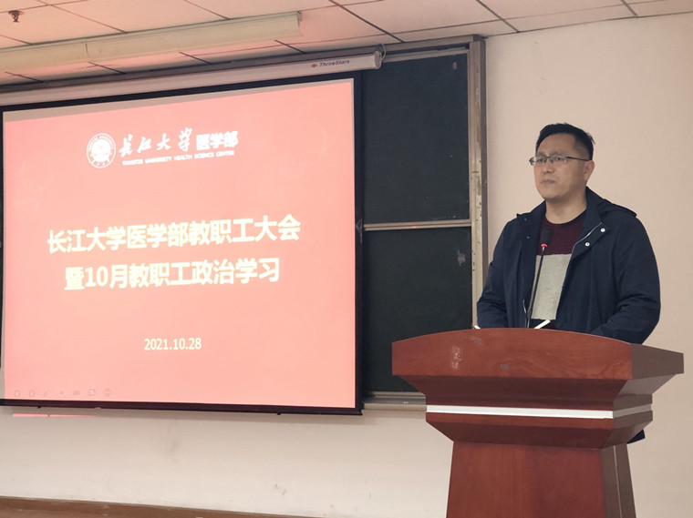 (通讯员 张渊)10月28日下午,在14教410会议室召开教职工大会暨10月教职工政治学习会议,会议由党委副书记张文君主持。