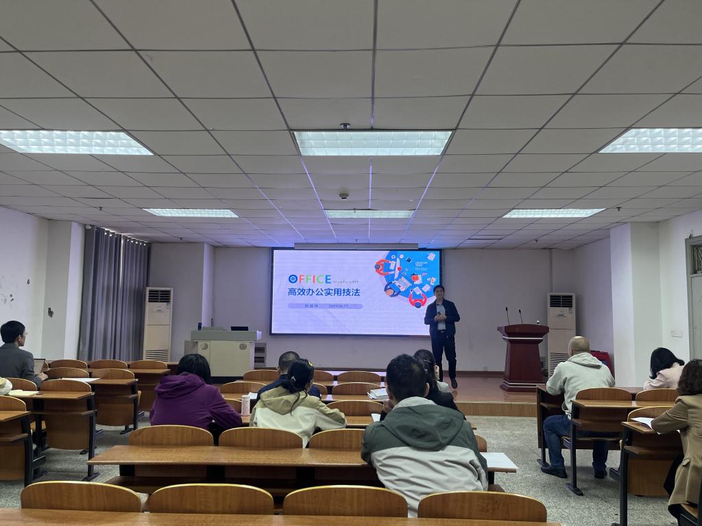 随后,开展了医心向党管理能力素养培训第二期专题讲座。本次邀请到的嘉宾是计科学院宦成林副教授,他开讲的题目是《OFFICE高效办公实用技法》。宦成林老师向大家分享了常用办公软件的各项实用小技巧,有效提升了各位老师在日常处理工作中的效率。