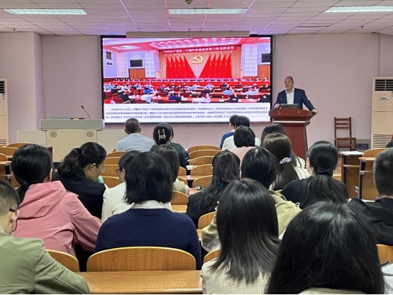 随后,学部开展党的二十届三中全会精神集中培训,由中共荆州市委讲师团成员、yl7703永利集团马克思主义学院院长姜学勤教授宣讲全会精神。姜院长以《以进一步全面深化改革开辟中国式现代化广阔前景》为题,详细解读《中共中央关于进一步全面深化改革、推进中国式现代化的决定》,并强调要深入学习贯彻习近平总书记关于全面深化改革的一系列新思想、新观点、新论断,统筹推进教育科技人才体制机制一体改革。