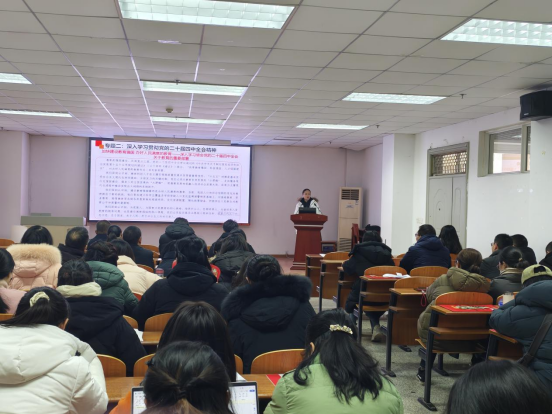 接着,会议进入教职工理论学习环节。黄群俊书记带领全体教师集中学习了习近平总书记近期重要讲话和重要指示批示精神,具体包括2026年新年贺词、在中央经济工作会议上的重要讲话、关于“三农”工作的重要指示,以及重要文章《扩大内需是战略之举》;聚焦学习贯彻党的二十届四中全会精神,系统学习习近平总书记重要文章《学习好贯彻好党的二十届四中全会精神》,“加快建设教育强国办好人民满意的教育——深入学习领会党的二十届四中全会关于教育的重要部署”“国家目标与支点定位的有机结合——湖北省委十二届十一次全会精神解读”,并学习王建平关于党的二十届四中全会精神的宣讲内容;围绕全面从严治党要求,学习中共中央政治局相关会议决策精神及省委落实工作的动员部署,同时紧扣奋进“十五五”、建功“双一流”发展主题,学习2026年湖北省科技创新大会精神,以及李殿勋主持召开省政府常务会议研究深化高等教育综合改革等工作的相关内容。警示教育环节中,全体教职工认真学习了省纪委监委公开通报5起违反中央八项规定精神典型案例和省纪委监委通报5起党员干部醉驾典型案例,从中汲取教训,筑牢思想防线。