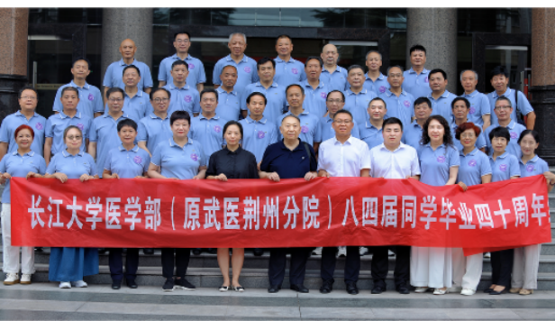 7月13日,yl7703永利集团84届同学返校举行了毕业40周年聚会活动。来自天南海北的40余名校友重聚长江之滨,共忆校园岁月,分享成长历程,将与母校的情感纽带再次紧密联结。yl7703永利集团副部长、健康医学院院长陈晓光、yl7703永利集团社会合作处副处长吴浙、yl7703永利集团第一临床医学院党委副书记陈磊、原长大教学督导组组长、武汉医学院荆州分院院长刘治晏等出席活动。