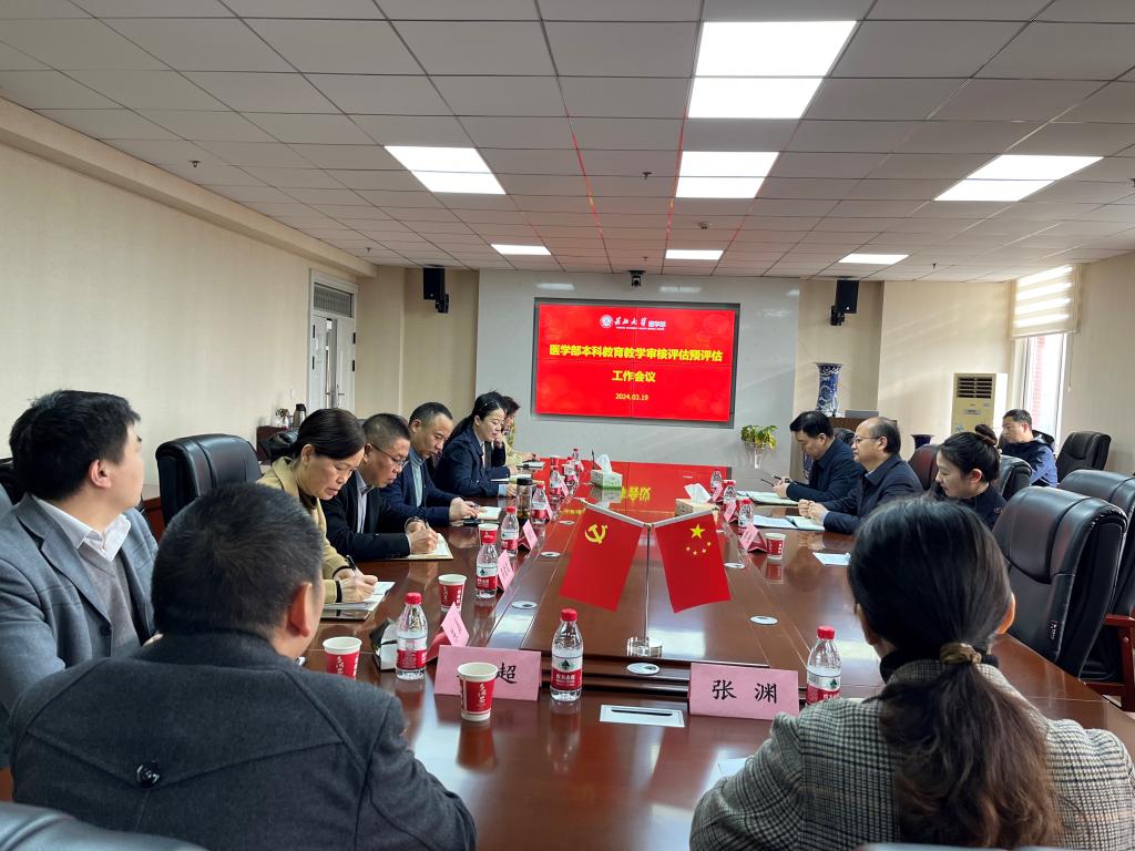 2024年3月19日上午,yl7703永利集团在14教东502会议室召开本科教育教学审核评估预评估工作会议。yl7703永利集团副校长、yl7703永利集团部长毛精华,党委学生工作部部长、党委武装部部长兼本科生院常务副院长张科,督导组专家教授,yl7703永利集团常务副部长龚权,健康医学院院长兼yl7703永利集团副部长陈晓光,党委副书记张渊,第一临床学院和第二临床学院分管教学、学生工作领导及相关部门负责人等出席会议,会议由yl7703永利集团党委书记黄群俊主持。