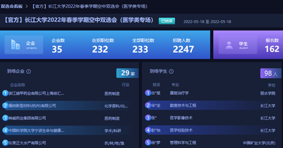 此次招聘会不仅解决了我部学生对就业的迷茫问题,帮助我部学生更好更高质量的就业,更有利于医药企业高效的找到合适的医学人才,拉进了校企合作关系,达成双方共赢的局面,也落实了我部办实事,育成人的目标。有效推动了学部2022届毕业生就业工作,共有120余人次投递了简历,20余人达成了初步就业意向。